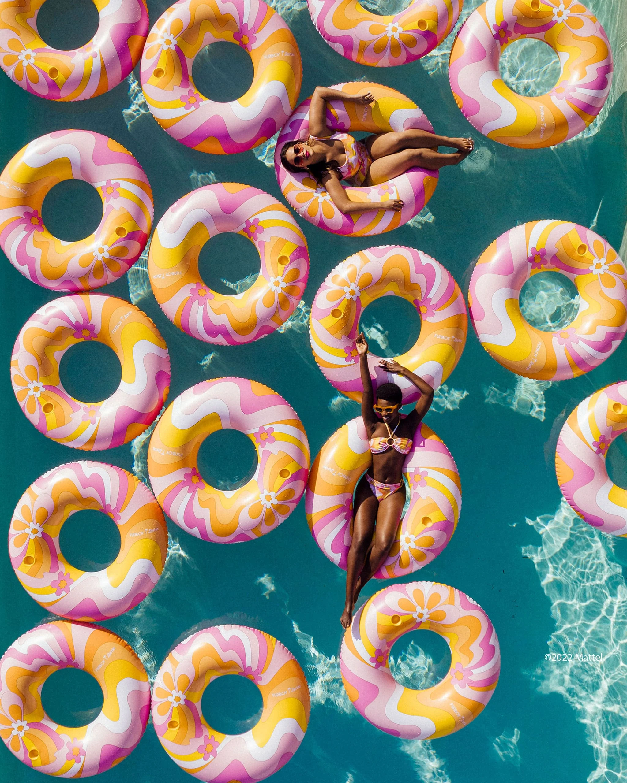 The most beautiful classic tube float ever! Part of the "Dream" collection, we’ve adorned FUNBOY’s oversized tube float with an original and iconic  FUNBOY X Barbie™ Dream artwork. This dreamy print draws upon Barbie’s iconic heritage with swirls of pink and orange. Flower blossoms and more provide whimsical and dreamy elements to this limited edition print. FUNBOY's oversized tube is 50" in diameter and features a cup holder. Enjoy the elevated retro dream print to enhance your summer experiences. Intended for ages 14+.